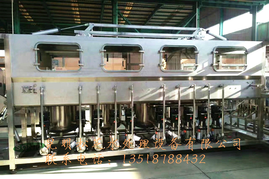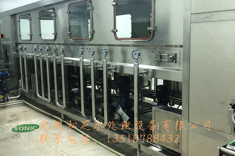 五加侖全自動桶裝設(shè)備技術(shù)先進、設(shè)計新穎、性能可靠、操作簡便,工藝流程科學(xué),食品衛(wèi)生條件好,生產(chǎn)線集空瓶輸送、瓶內(nèi)預(yù)洗、自動拔蓋、瓶外刷洗、上瓶、下瓶、內(nèi)外洗瓶、灌裝、套蓋、壓蓋、燈檢、熱收縮膜、套袋、成品水輸送于一體,實現(xiàn)全自動智能化生產(chǎn),整個生產(chǎn)流程嚴(yán)格控制,保證了整個洗瓶灌裝過程完全達到國家衛(wèi)生部門的有關(guān)標(biāo)準(zhǔn)和規(guī)定,在灌裝過程中嚴(yán)格控制二次污染,做到無菌生產(chǎn),是各公司、廠家最理想、最認(rèn)可、最可靠的自動桶裝設(shè)備生產(chǎn)線。